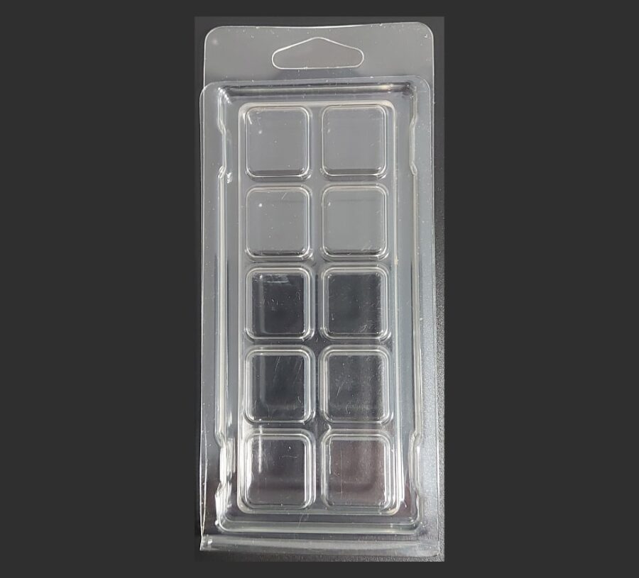 Pure Scented 10 Cell Snap Bar Clamshells are the industry standard for professional wax melt packaging — durable, crystal-clear, and made from fully recyclable PET plastic.